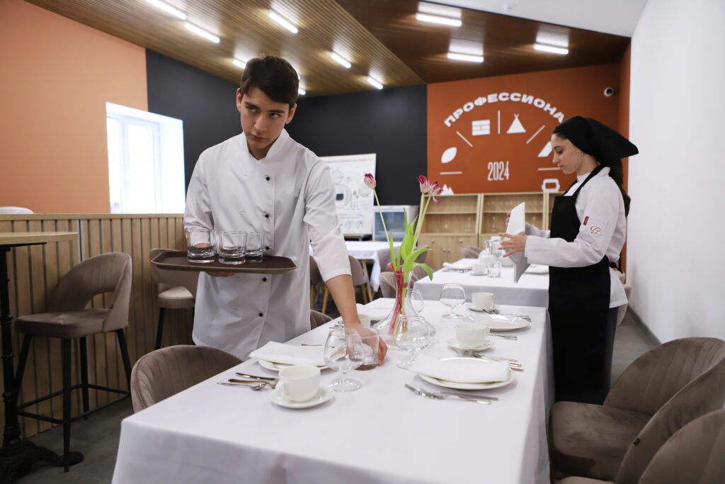 За счет этих средств в том числе реализовано 27 образовательных программ по специальностям «Туризм и гостеприимство», «Торговое дело», «Поварское и кондитерское дело», для студентов созданы современные учебные зоны по видам работ.