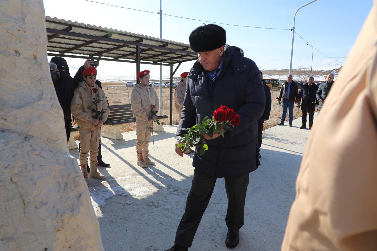 В Акушинском районе Абдулмуслим Абдулмуслимов совместно с Русланом Алиевым и главой муниципалитета Махачом Абдулкеримовым возложили цветы к памятнику погибших в зоне СВО военнослужащих, расположенному в «Саду памяти» в селе Муги. Об этом сообщила сообщила пресс-служба правительства.