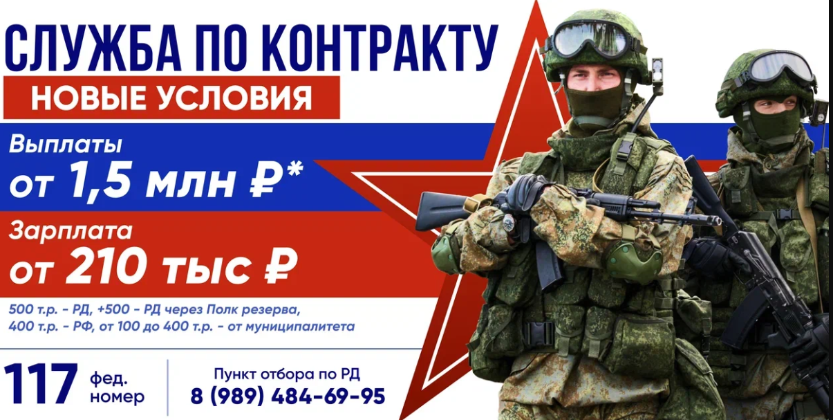 Теперь граждане, заключившие контракт, получают 500 тысяч рублей от республики, еще 500 тысяч рублей – дополнительно для тех, кто заключил контракт в полк резерва, 400 тысяч рублей – из федерального бюджета, а также средства от своего муниципалитета (как пример: 200 тысяч рублей от мэрии Кизляра). Заработная плата составляет от 210 тысяч рублей в месяц.