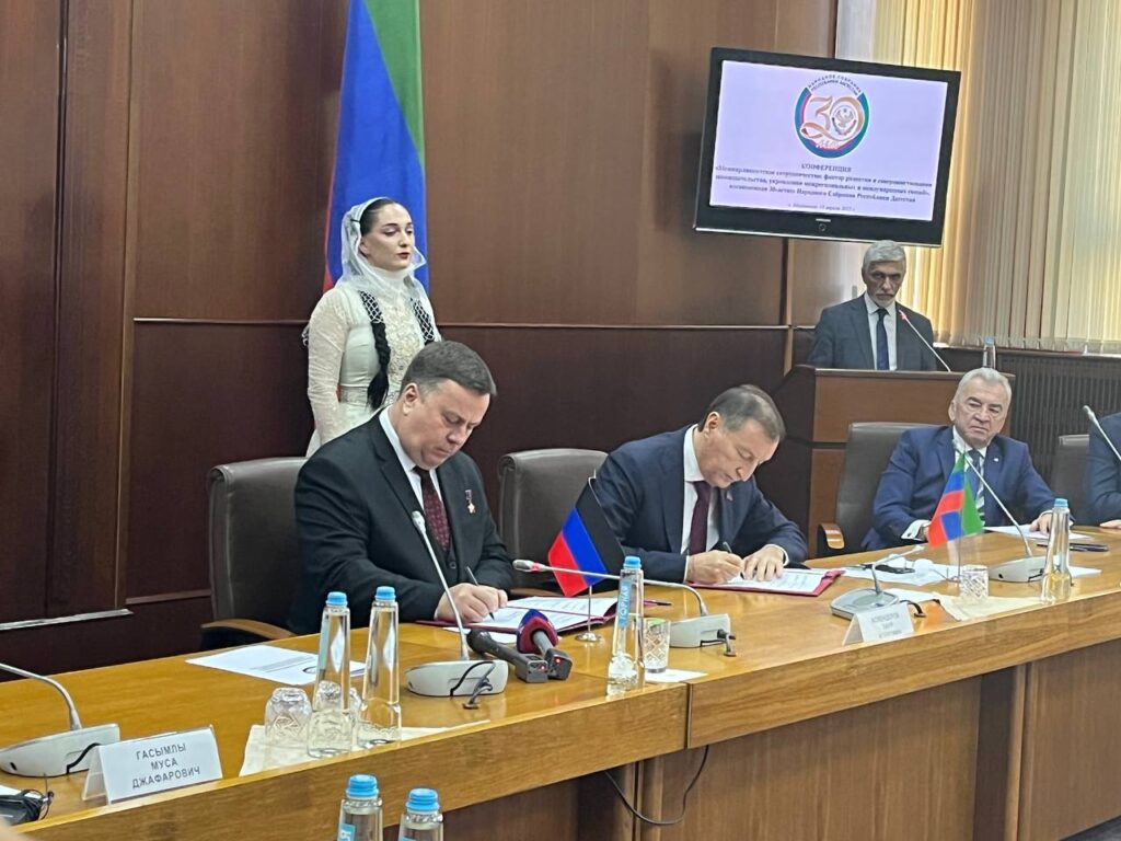 В ходе конференции состоялось подписание соглашений между Народным собранием Дагестана и Народным советом Донецкой Народной Республики, а также Херсонской областной думой.
