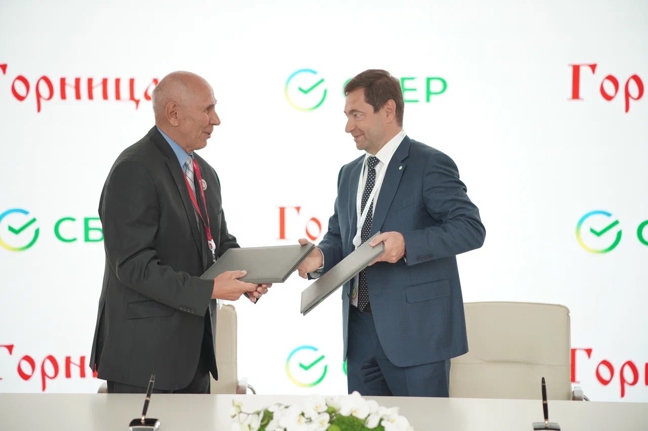 Сегодня на Петербургском международном экономическом форуме Председатель Юго-Западного банка Сбербанка Анатолий Песенников и бенефициар группы компаний «Горница» Сергей Щерба подписали соглашение о намерениях развития сотрудничества.