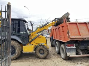 В распоряжении уборщиков были не только лопаты, ведра и насосы. Для тяжелых работ привлекли спецтехнику, экскаваторы-погрузчики загружали высохшую грязь в самосвалы «КАМАЗ» для вывоза.